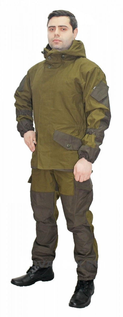 Костюм «Горка Палатка» является модификацией знаменитого костюма «Горка» используемого в спецподразделениях, так что его можно рекомендовать людям, живущим активной жизнью, привыкшим помногу и подолгу бывать на свежем воздухе в экстремальных условиях. Костюм «Горка Палатка» состоит из куртки и брюк на подтяжках. Отличается специальным анатомическим кроем, характерным для данной линии одежды. Этот костюм не стесняет движений, дает свободу перемещения в условиях пересеченной местности. Горка-Палатка выполнен из 100% хлопковой ткани «палатка» в классической расцветке хаки. Эта ткань хорошо дышит, не создает дискомфорта для тела, обладая при этом классической прочностью брезента. Куртка на пуговицах, с двухслойной супатной застежкой. Плечи усилены плотной непромокаемой тканью. Манжет рукава резинка. Брюки с поясной резинкой и шлевками под ремень. Колени с усилением и дополнительным объемом.