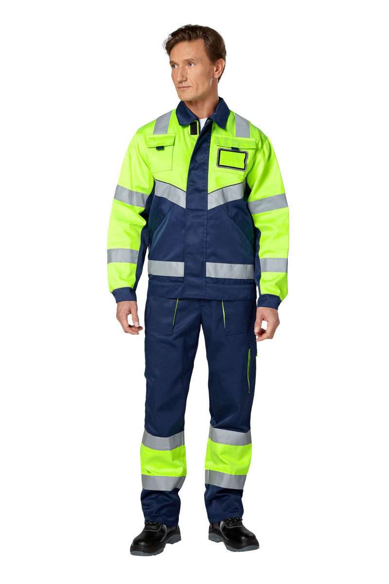 Костюм - куртка и брюки со световозвращающими лентами шириной 50 мм и флуорисцентной тканью, что соответствует 3 классу сигнальной защиты.