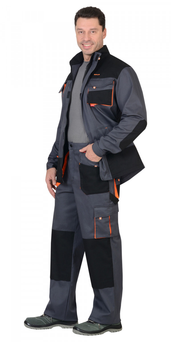 Костюм МАНХЕТТЕН длинная куртка, брюки, т.серый с оранжевым и черным