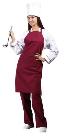 Удобный поварской костюм. Состоит из брюк, двубортной куртки белого цвета, колпака и фартука с грудкой. Ткань "Тиси" состав 65% пл.35% хл. плотность 120 г/м.