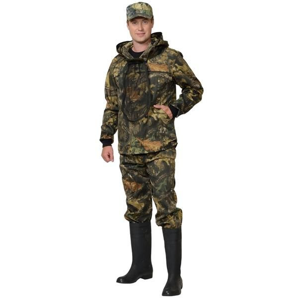 Куртка: имеет регулируемый капюшон с антимоскитной сеткой, на грудке и рукавах предусмотрены складки-ловушки от клещей, манжеты хлопковые с эластаном, боковые карманы в рельефе с защитным клапаном на кнопке.