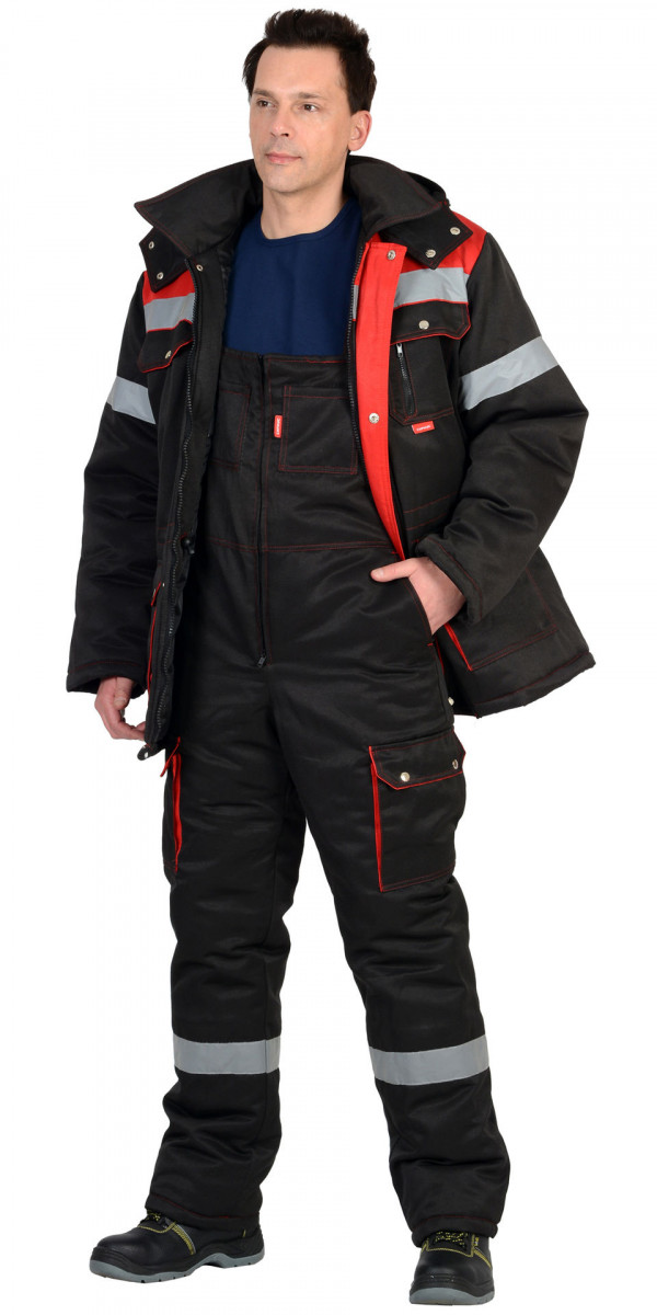 Костюм зимний ТИТАН/АНТЕЙ куртка дл.+п/к черный/красный с СОП