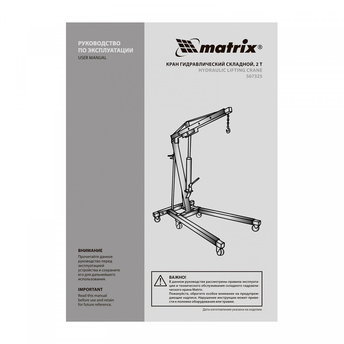 Гидравлический кран Matrix не требует электричества и дополнительных опор для работы.
