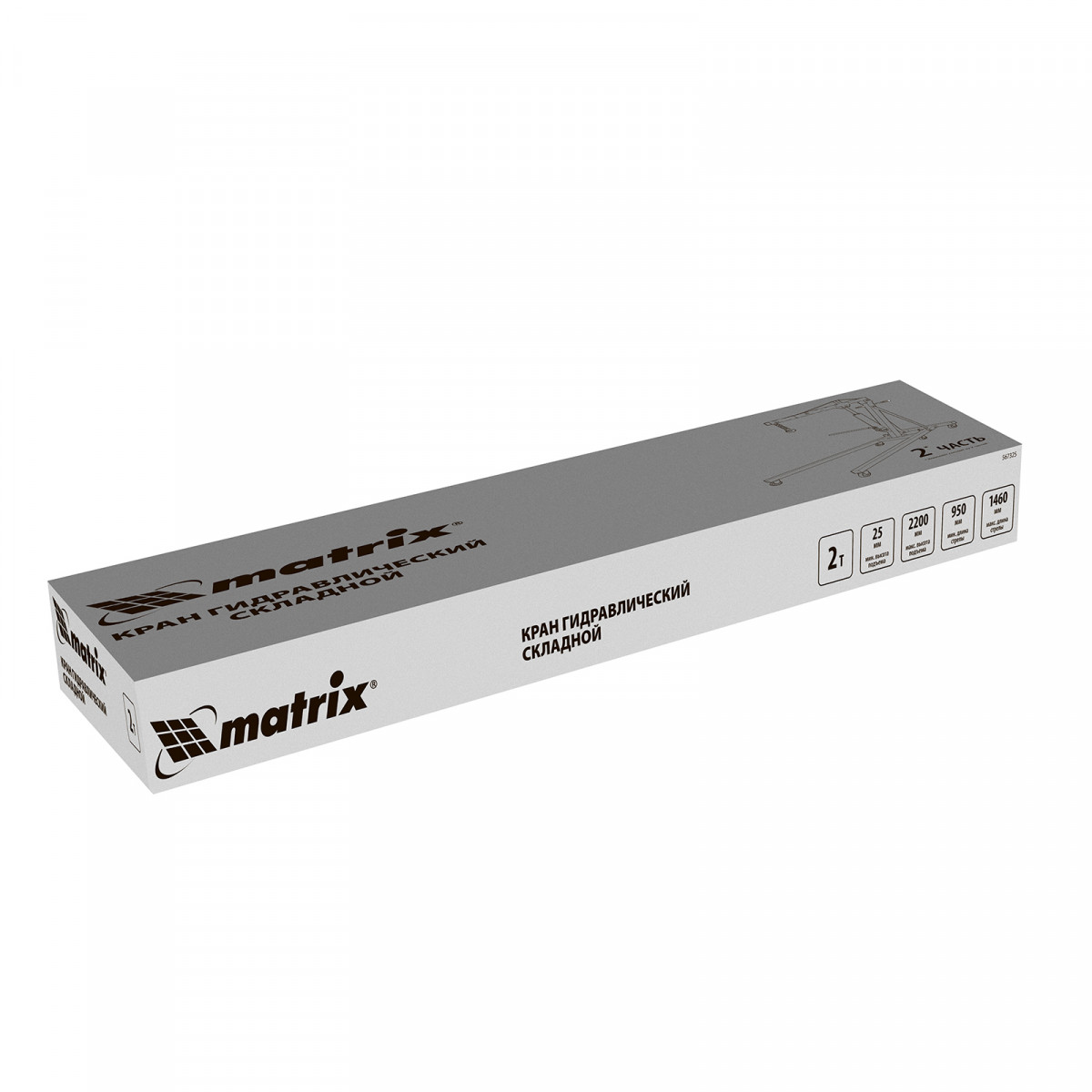 Кран гидравлический, 2 т, H подъема 25-2200 мм, складной (комплект из 2 частей) Matrix