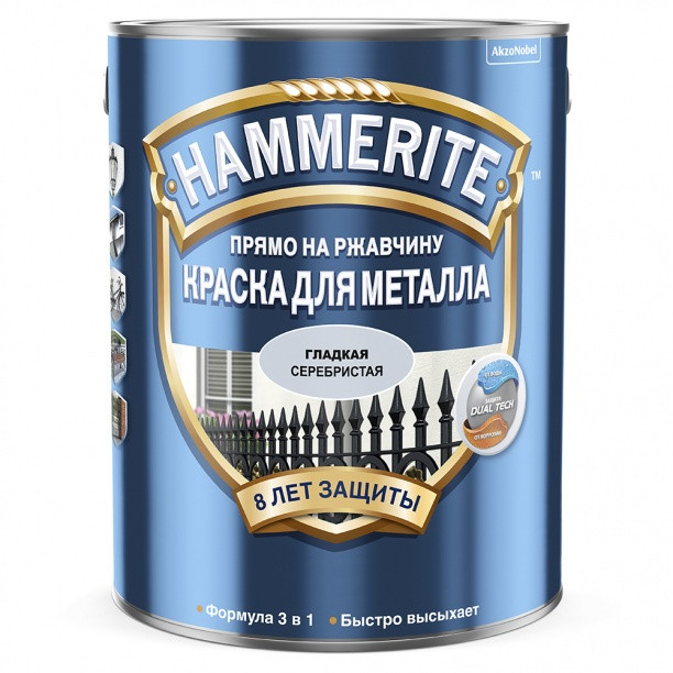 Краска для металла с эффективной формулой 3 в 1 (грунт, ингибитор коррозии, финишное покрытие). Грунт - выравнивает поверхность. Ингибитор коррозии - останавливает ржавчину. Финишное покрытие чешуйчатой структуры - блокирует путь воде, не допуская ни капли до металла. Содержит активные антикоррозийные добавки (фосфат цинка).
