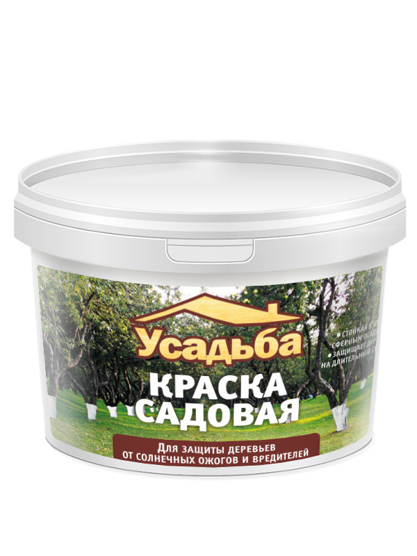 Краска предназначена для защиты плодовых, декоративных деревьев и кустарниковых растений от вредителей, солнечных ожогов, болезней, перепадов температур и атмосферного воздействия