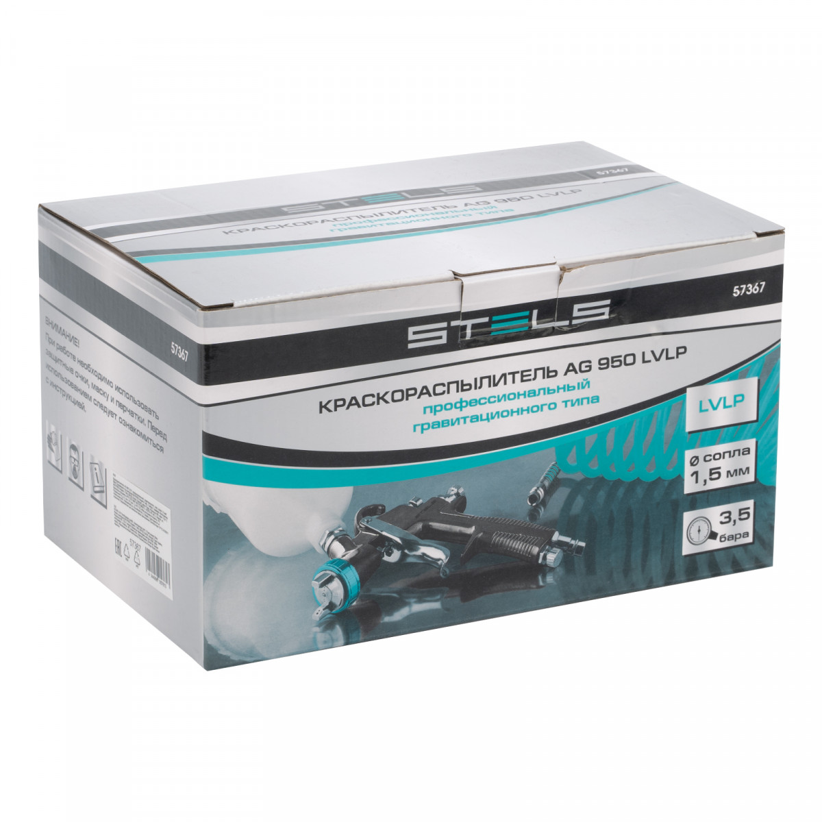 Краскораспылитель AG 950 LVLP, профессиональный, гравитационного типа, сопло 1.5 мм Stels