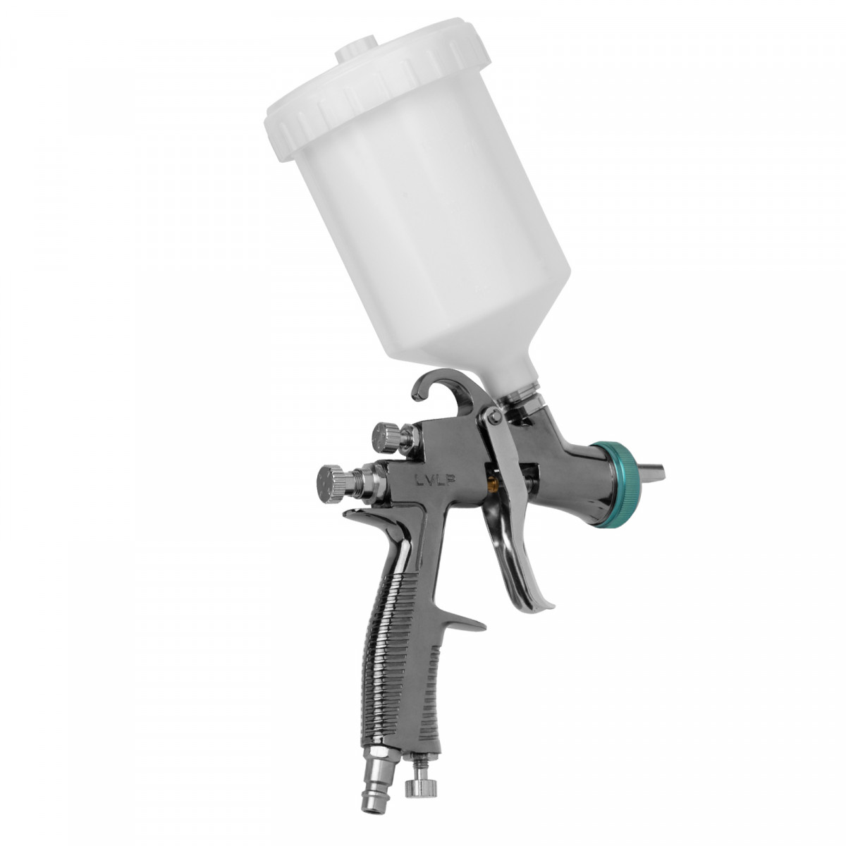 Профессиональный пневматический краскораспылитель гравитационного типа Stels AG 950 LVLP 57367 с соплом диаметром 1,5 мм подходит для проведения окрасочных работ, покрытия керамики глазурью, грунтовки стен, побелки потолков, лакирования дерева. Технология «Низкий объем, низкое давление» (Low Volume Low Pressure) позволяет уменьшить расход окрасочного материала до 140-190 мл/мин и добиться его 80-процентного переноса на обрабатываемую поверхность. Поэтому краскопульт отлично подойдет для применения как в быту, так и на производствах.