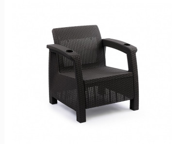 Кресло произведено из высококачественного полипропилена, имитирующего плетение из ротанга.
