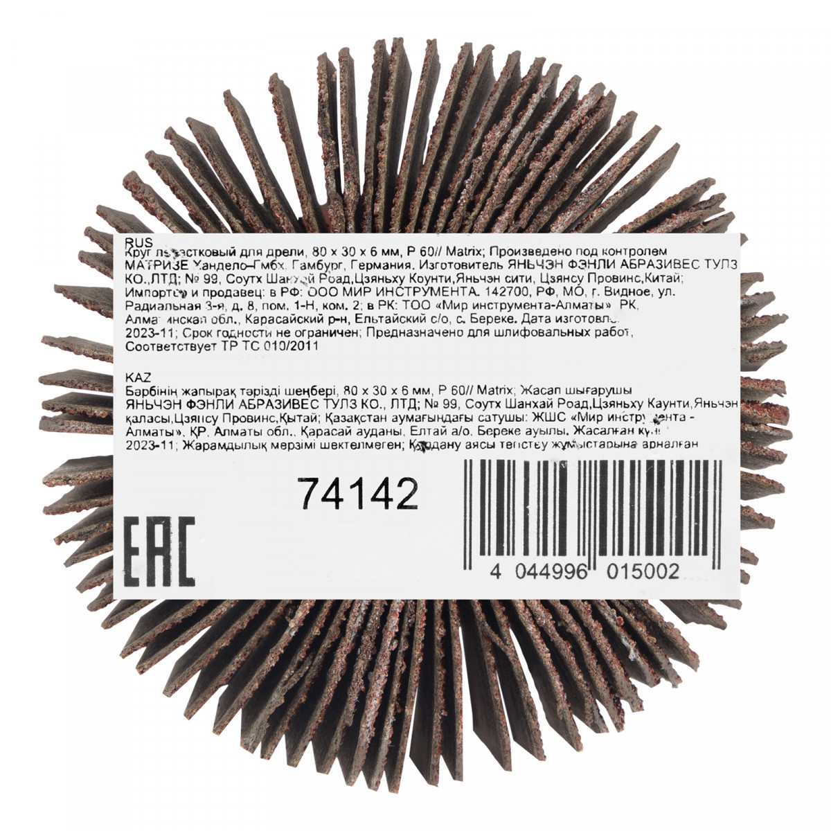 Круг лепестковый для дрели, 80 х 30 х 6 мм, P 60 Matrix