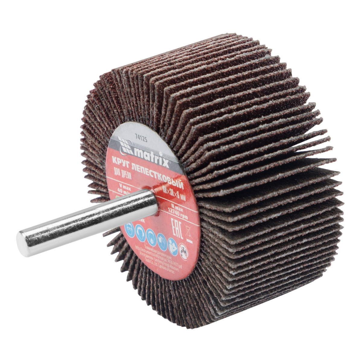Лепестковый круг Matrix 74144 размером 80 х 30 х 6 мм, с зернистостью P 80, совместим с дрелями и прямыми шлифовальными машинами с посадочным диаметром 6 мм и максимальной скоростью вращения 6000 об/мин. Предназначен для радиального шлифования внутренних и наружных поверхностей. Абразив P 80 позволяет проводить промежуточную обработку древесины и металла — удалять заусенцы, слои лака, ржавчины или краски, зачищать сварные швы, готовить поверхности к чистовому шлифованию.