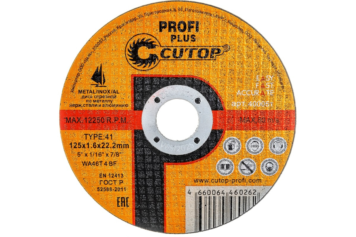 Круг отрезной 125х1,6х22,2 по металлу/нержав Cutop Profi Plus