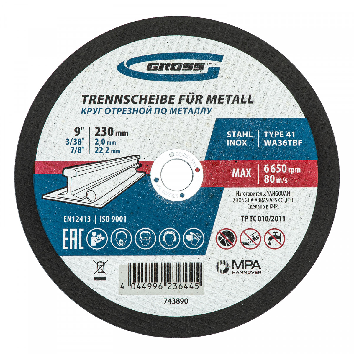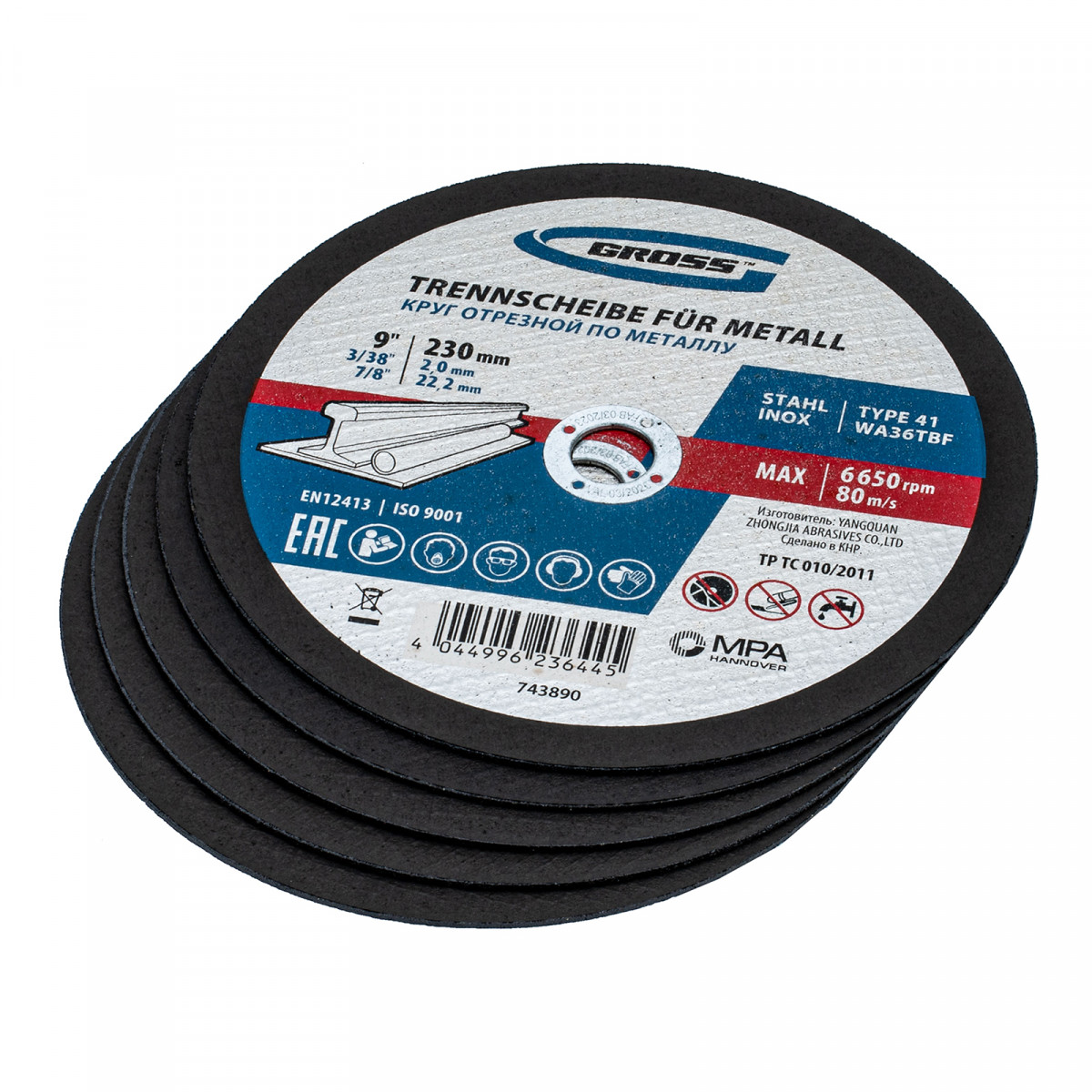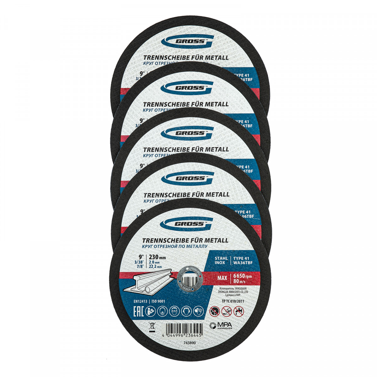 Круг отрезной по металлу, 230 х 2,0 х 22,2 мм, WA36TBF, в метал.банке, 5 шт. Gross