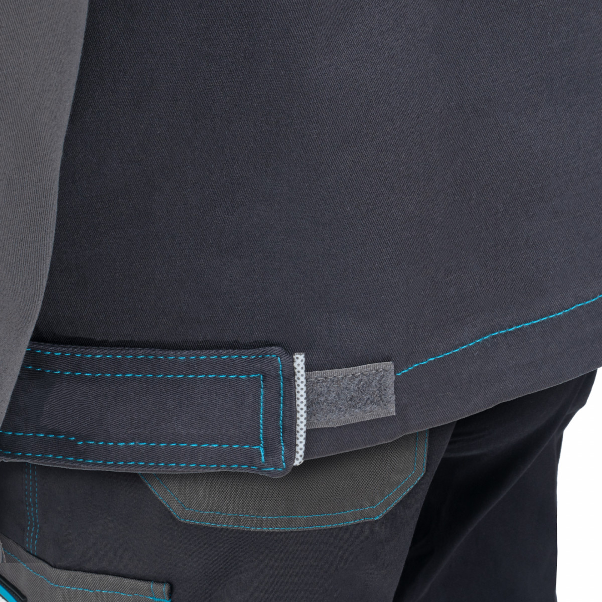 - Функциональность — спецодежда оснащена воротником-стойкой, светоотражающими элементами, дополнительным клапаном на центральной молнии для защиты от ветра и 5 удобными карманами для мелочей.