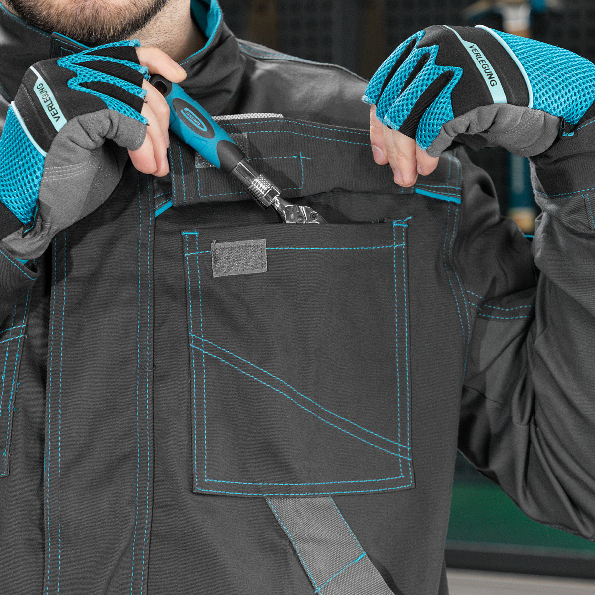 Профессиональная рабочая куртка Gross 90436 размера XXXL защищает пользователя от общих производственных загрязнений, нетоксичной пыли, ветра и незначительных механических воздействий. Рассчитана на рост 186-192 см и предназначена для использования в теплое время года или в отапливаемом помещении. Куртка изготовлена из ткани с 97-процентным содержанием хлопка и 3-процентным содержанием спандекса. За счет наличия хлопковых волокон в составе ткань прекрасно пропускает воздух и приятна на теле, а спандекс делает ее более эластичной, поэтому в куртке удобно работать. Одежда выполнена в практичном темно-сером цвете.