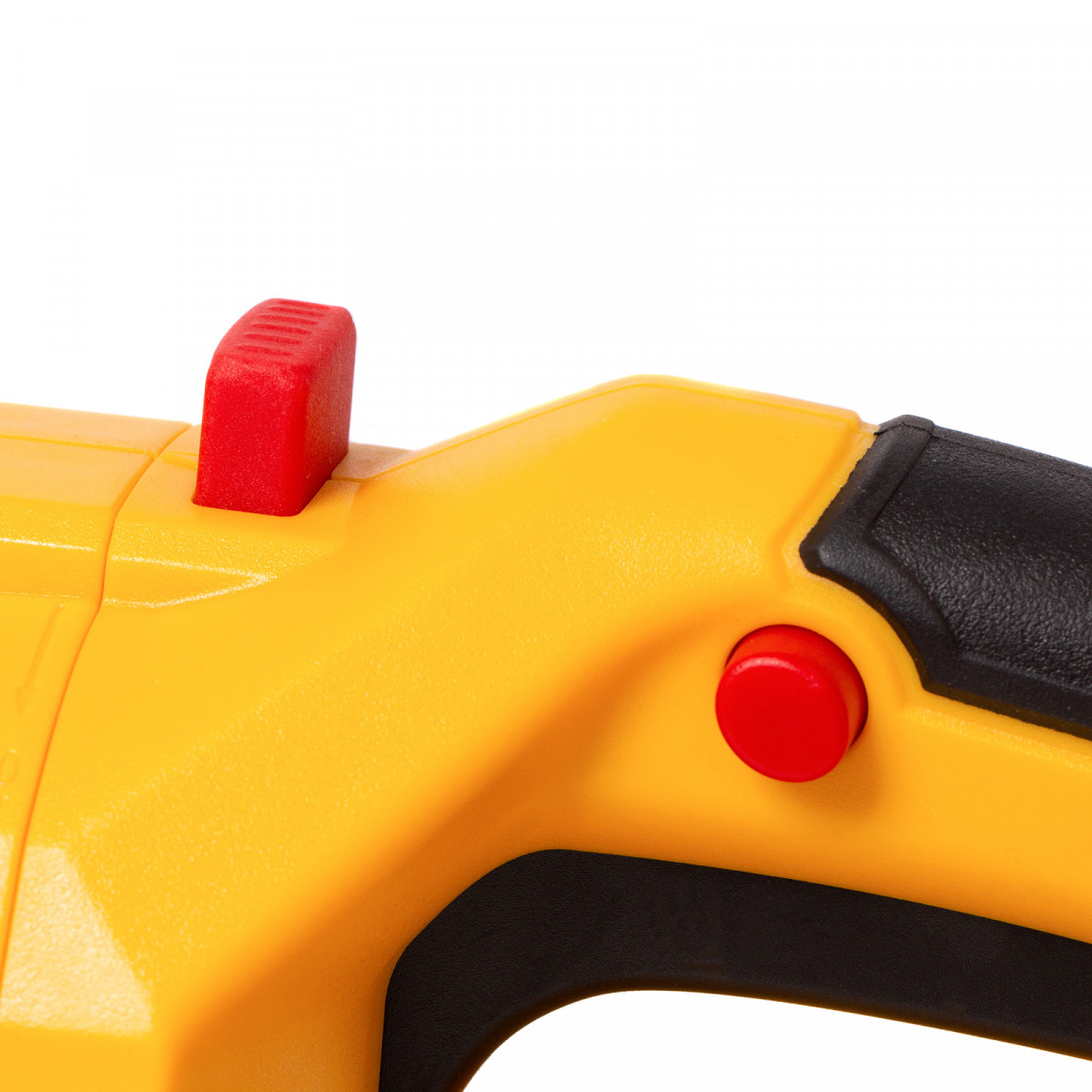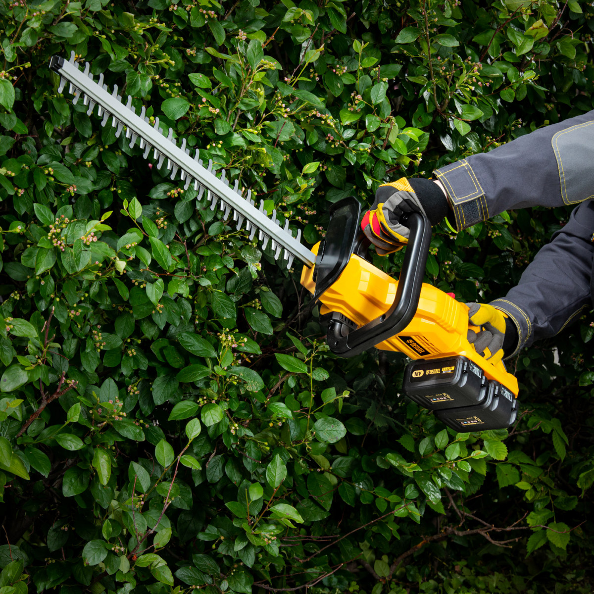 • Удобная работа под разным углом — рукоятку можно развернуть на 90 градусов влево и вправо для боковой подрезки кустарников, а для надежной фиксации предусмотрена кнопка блокировки поворота.