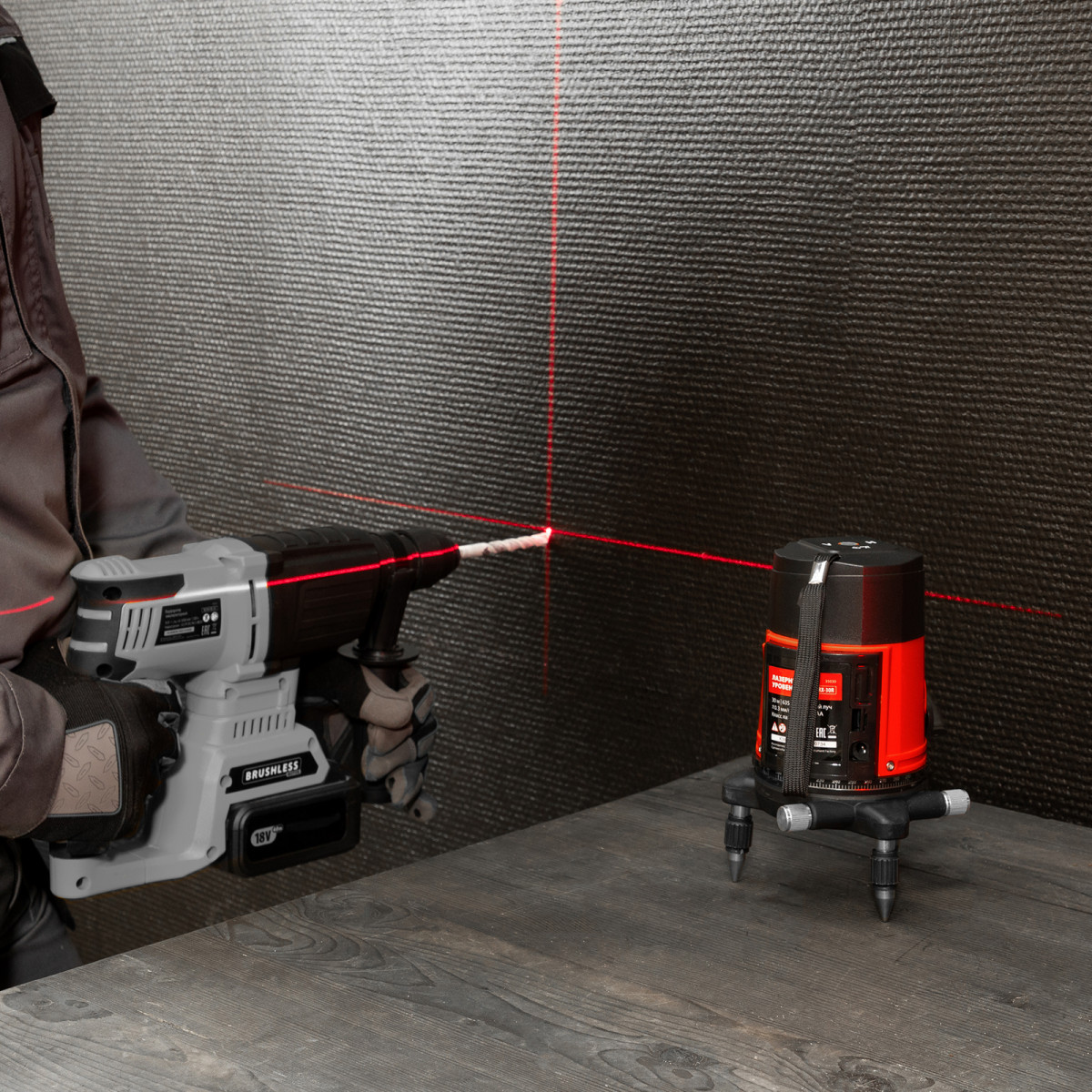 • Широкая комплектация — инструмент поставляется в удобном кейсе, с очками для распознавания лучей на большом расстоянии и при ярком освещении.