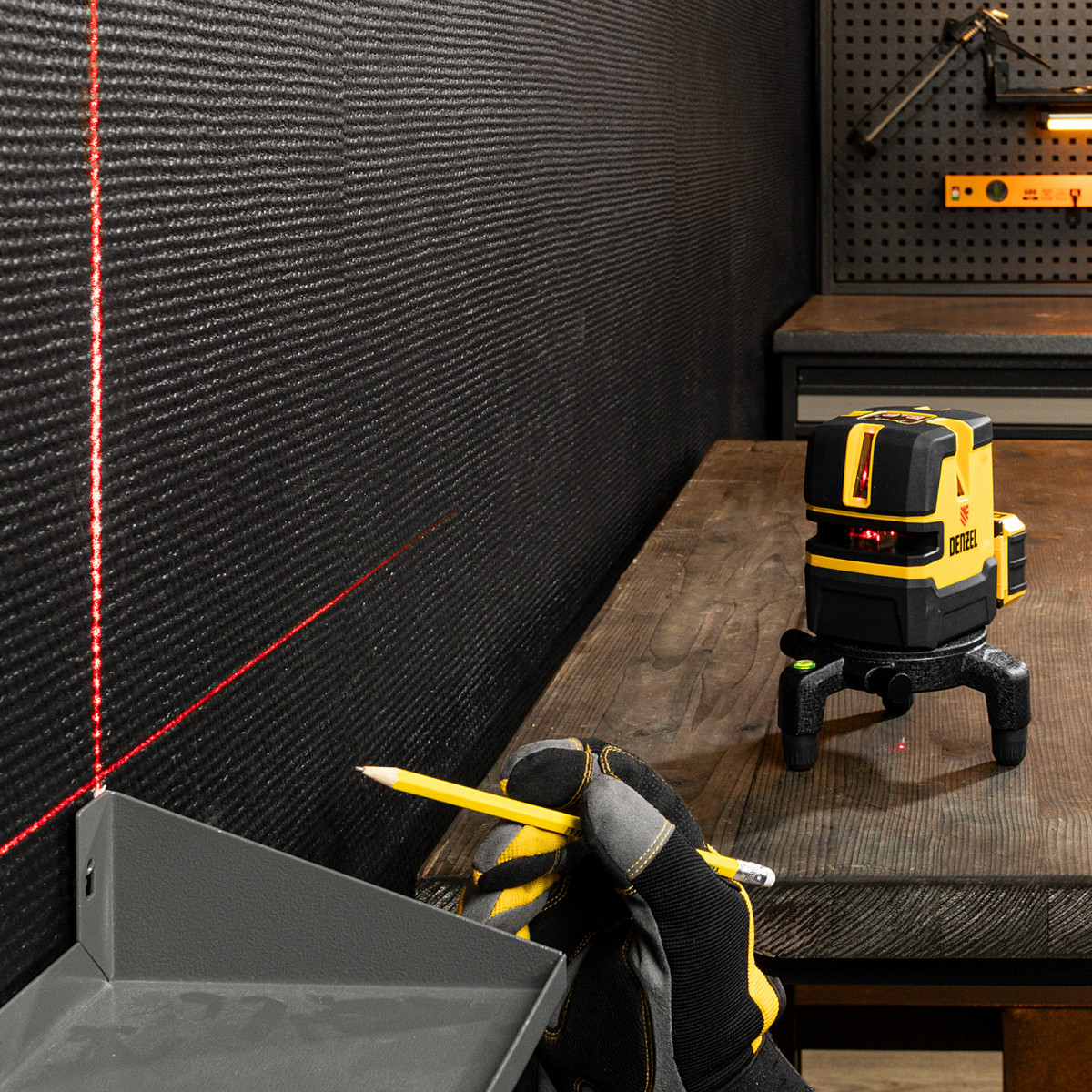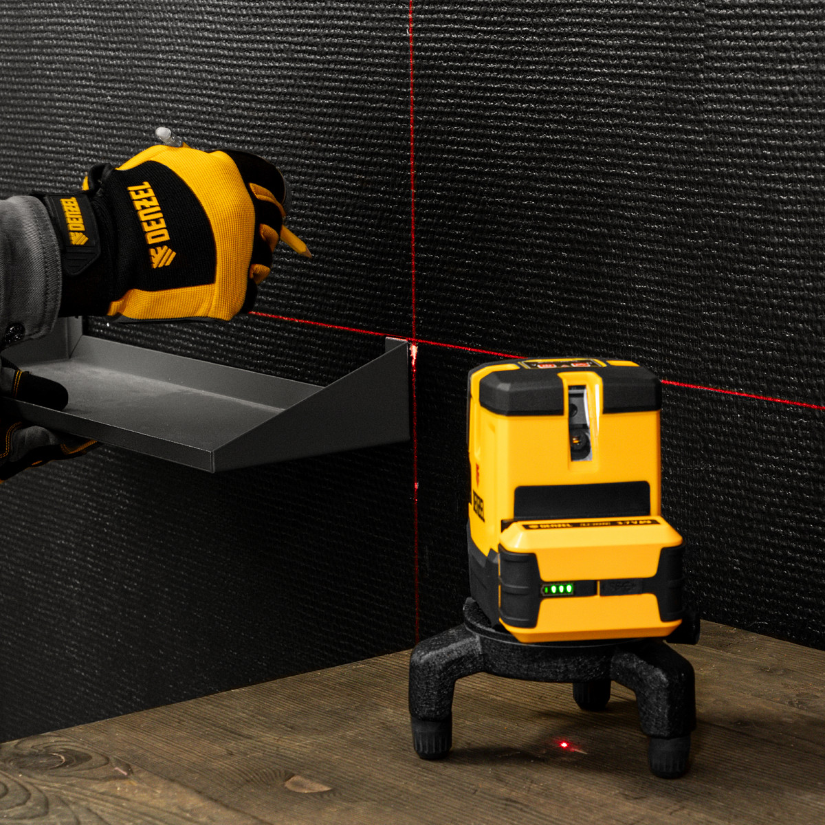 • Резьба под штатив 5/8 дюйма — лазерный уровень удобно использовать при работах на разной высоте.