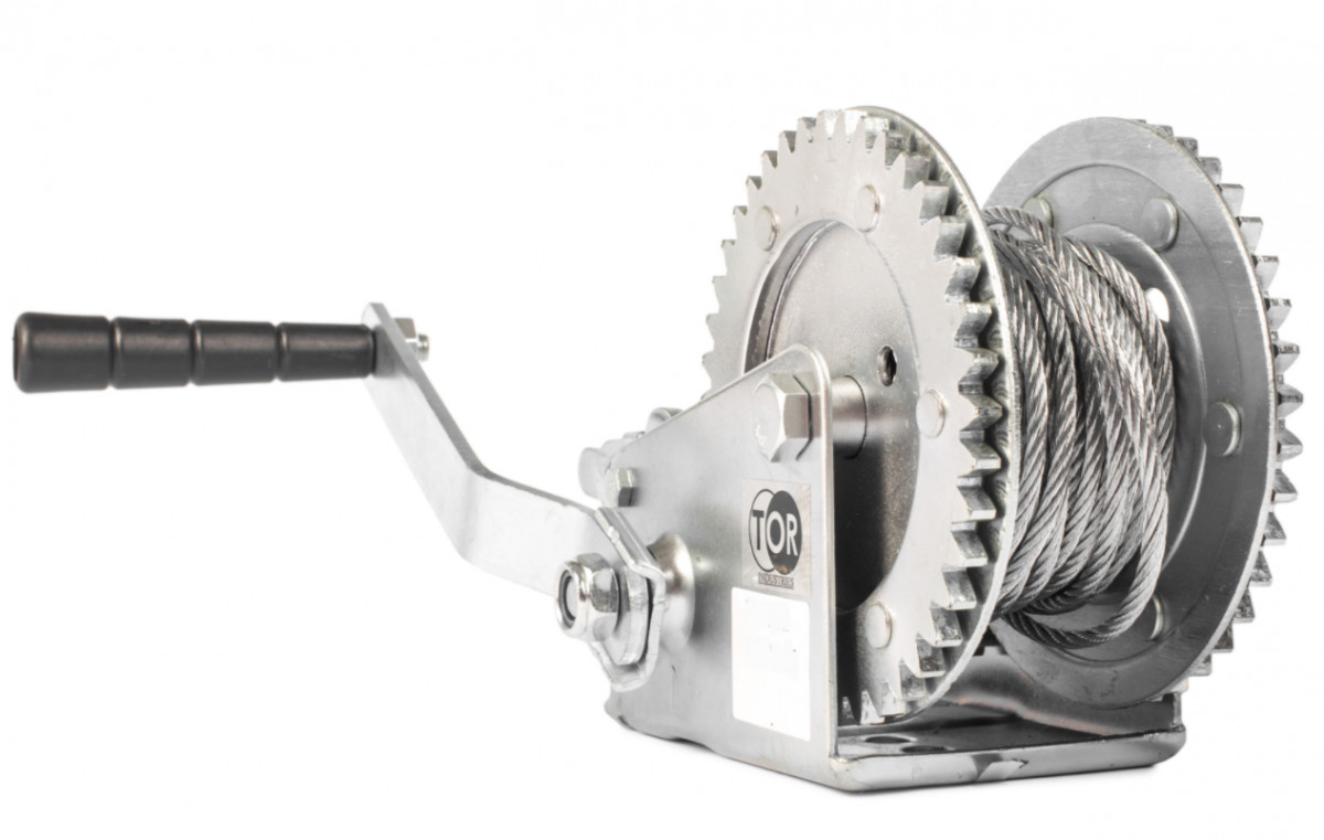 Ручная барабанная лебедка TOR LHW 11312 предназначена для поднятия груза массой до 1 тонны. Механизмом можно работать в закрытом помещении, а также на открытых площадках. Конструкция оснащена прочным канатом диаметром 5 мм. Рукоять управления хорошо и удобно лежит в руке.