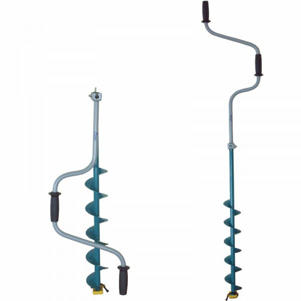 Основное и единственное отличие двуручных ледобуров от классических – верхняя рукоятка ледобура смещена относительно оси ледобура на 130 мм, а нижняя на 150 мм. Такое расположение рукояток позволяет вращать ледобур одновременно двумя руками, тем самым, увеличивая скорость бурения лунок во льду. Кроме того, существенно уменьшаются габариты ледобура в транспортном положении. По всем остальным характеристикам двуручные ледобуры полностью соответствуют классическим.