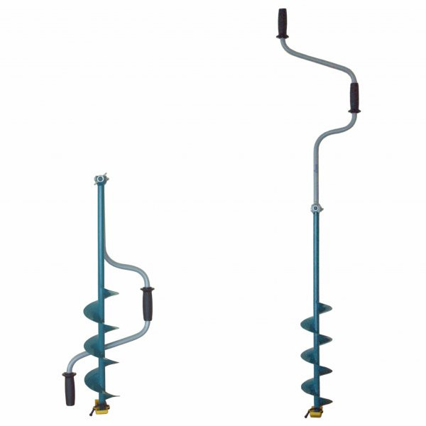 Такое расположение рукояток позволяет вращать ледобур одновременно двумя руками, тем самым, увеличивая скорость бурения лунок во льду.