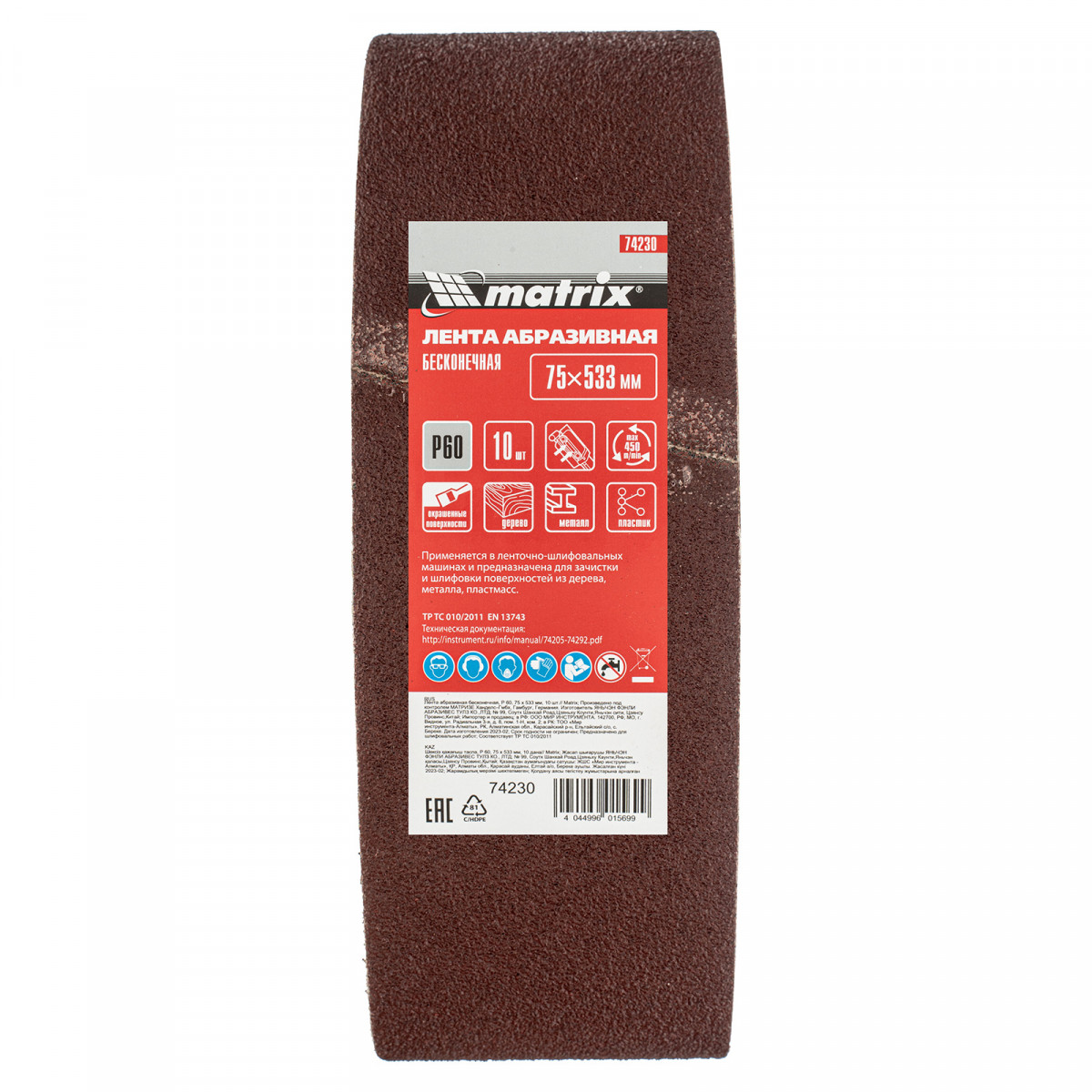 Лента абразивная бесконечная, P 60, 75 х 533 мм, 10 шт Matrix