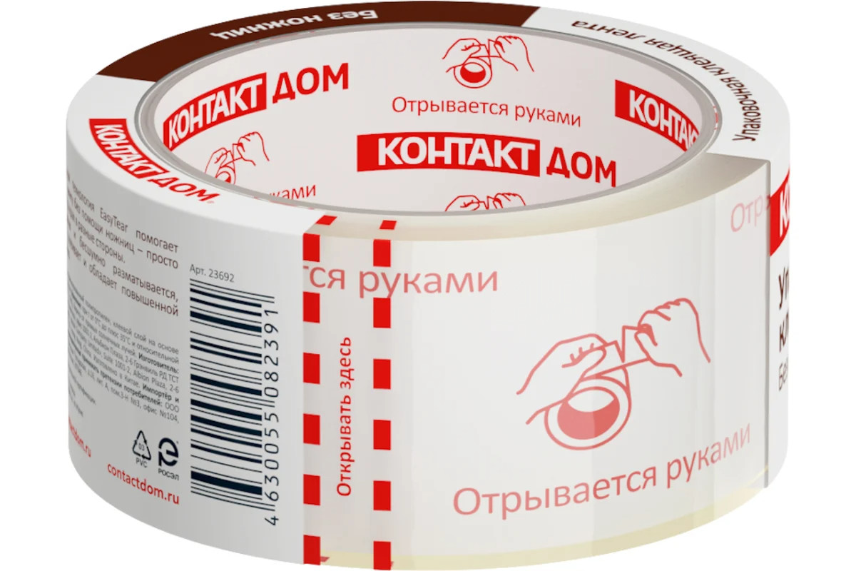 Лента упаковочная клеящая 48мм х 50м без ножниц КОНТАКТ ДОМ — идеальное решение для быстрой и надежной упаковки грузов и посылок.