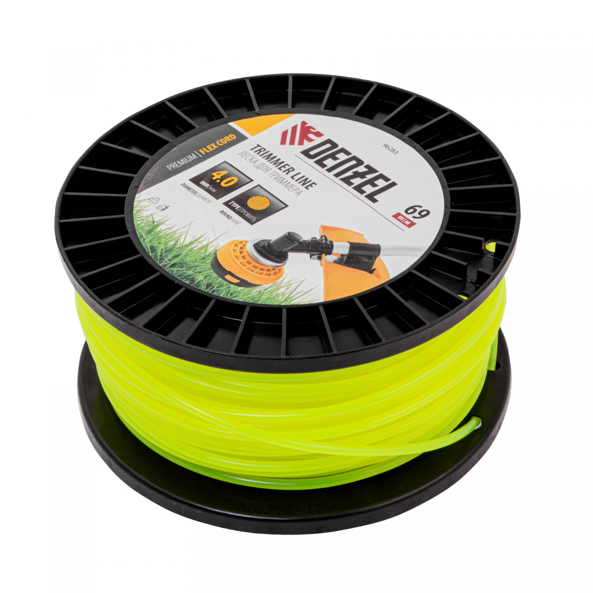 Леска для триммера круглая, 4,0мм х 69м, на DIN катушке FLEX CORD, Denzel