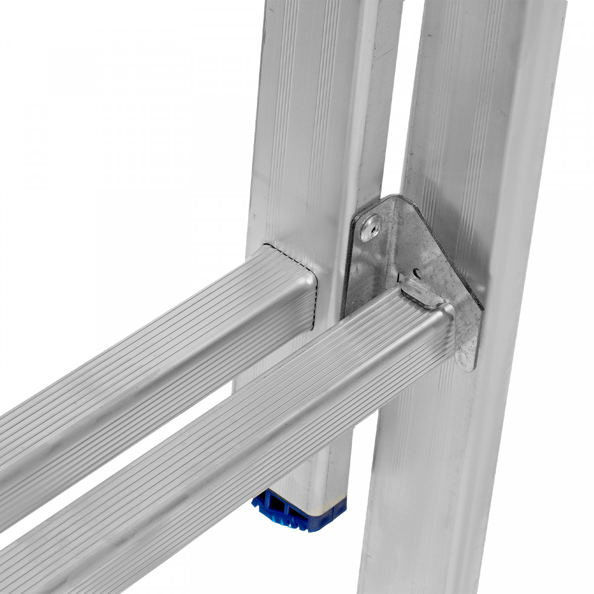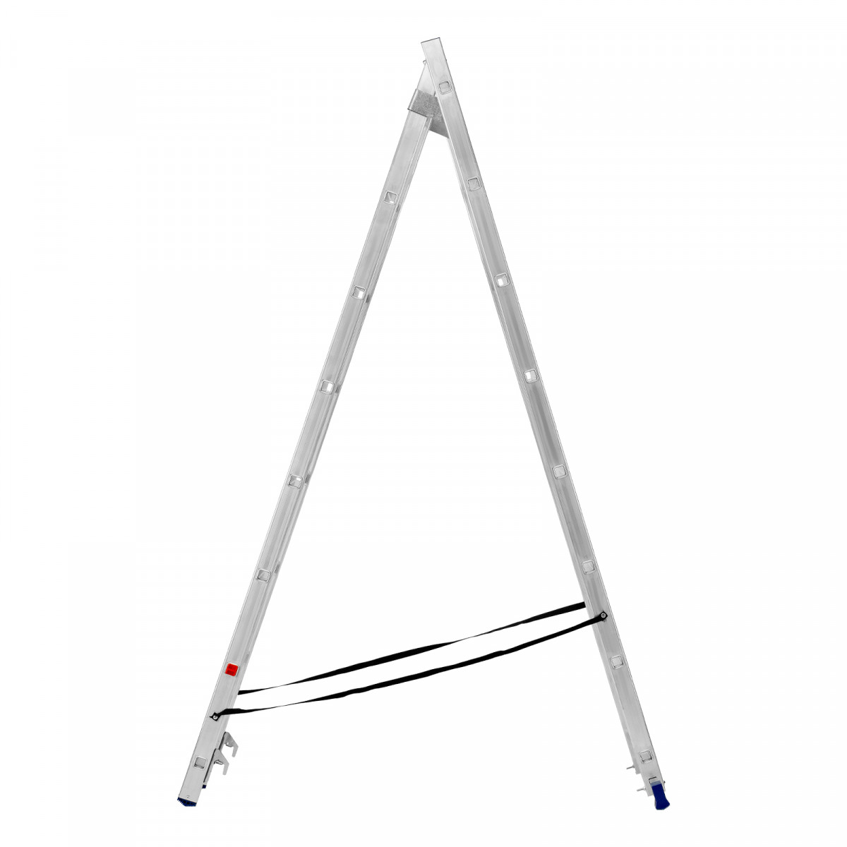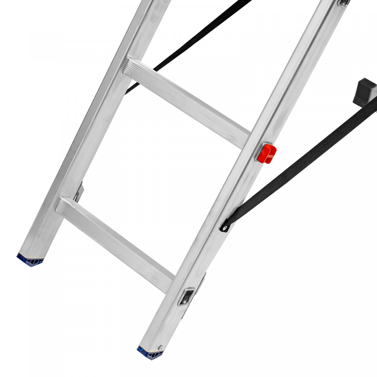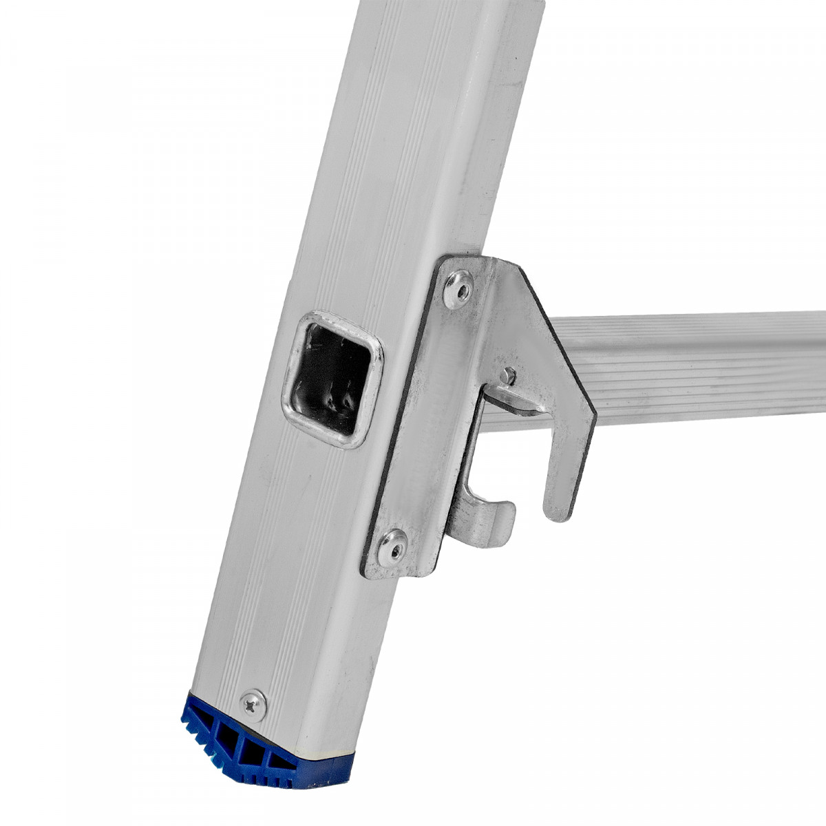 - Устойчивость — благодаря съемному стабилизатору лестница ровно стоит на горизонтальной поверхности.