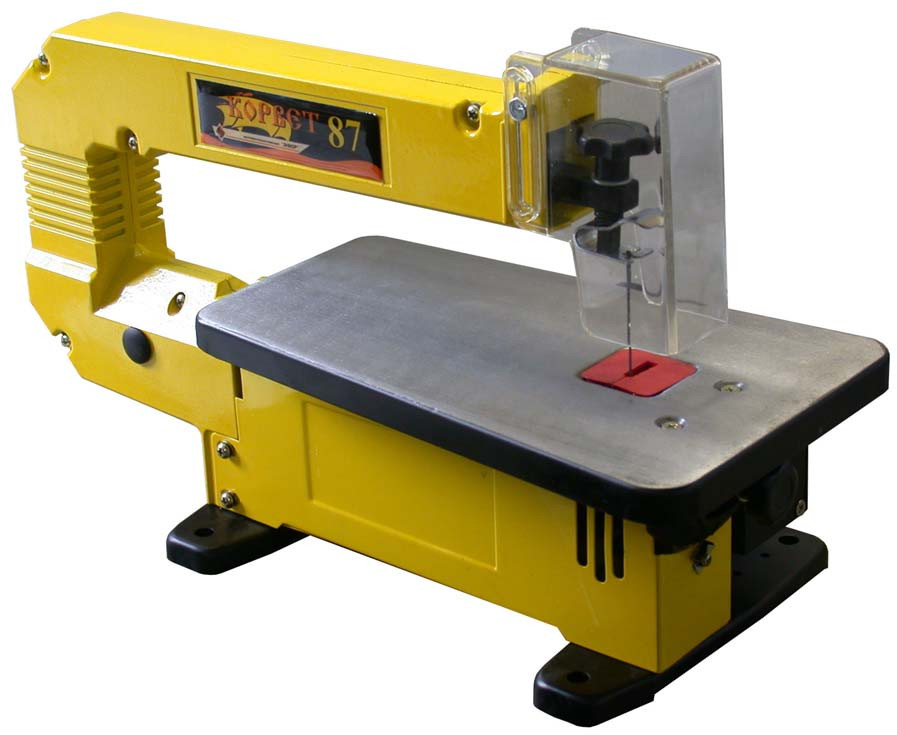 Настольный электрический лобзик «Корвет 87» предназначен для выпиливания декоративных элементов из деревянных заготовок, а также для прямой, поперечной, наклонной, и продольной распиловки. Устойчивость и увеличенный вылет рамы дает возможность выполнять внутренние распилы относительно больших заготовок. Регулировка наклона рабочего стола позволяет выпиливать более сложные конфигурации.