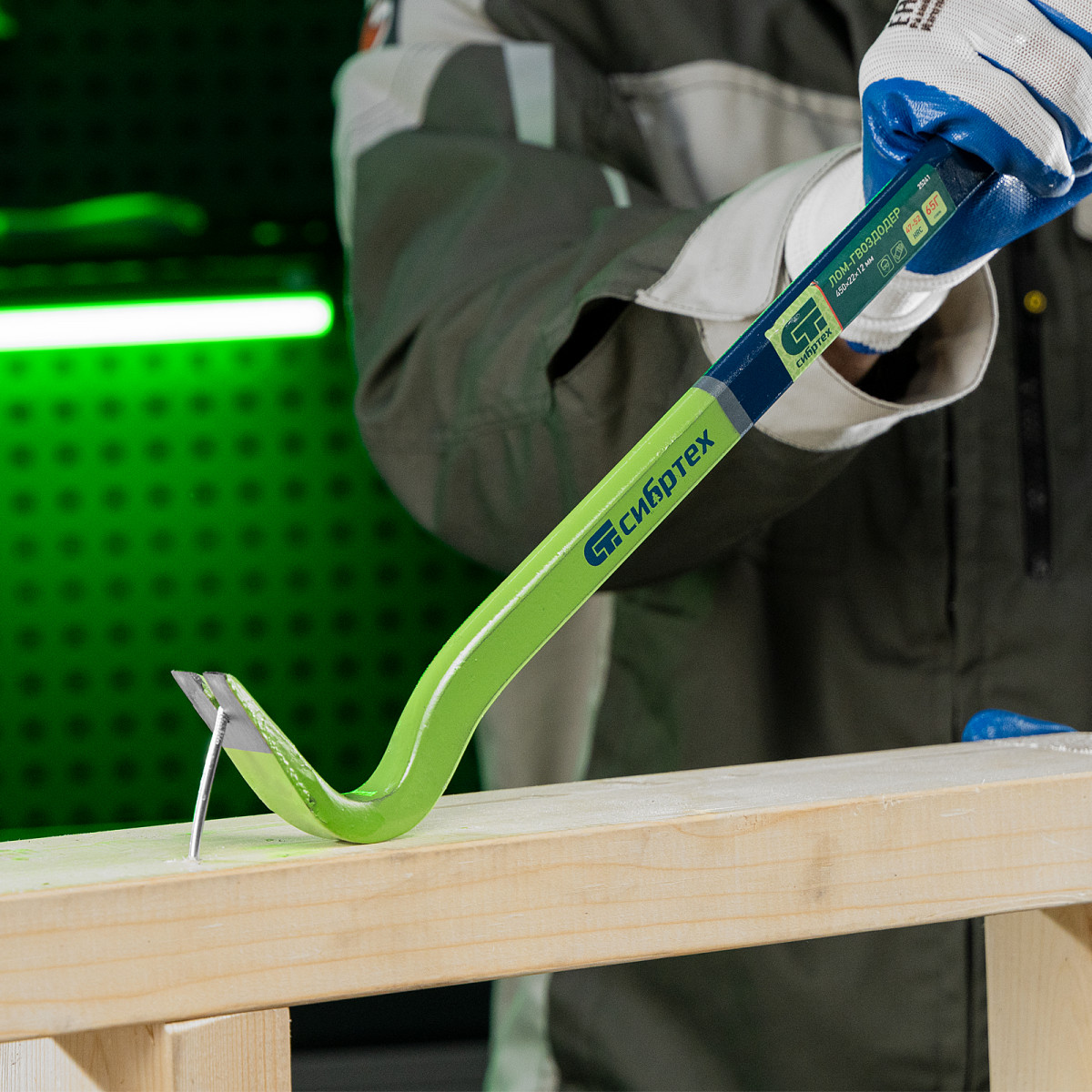 • Прочность — лом-гвоздодер из кованой стали 65 Mn, обладающей пружинными свойствами, не ломается при высоких нагрузках.