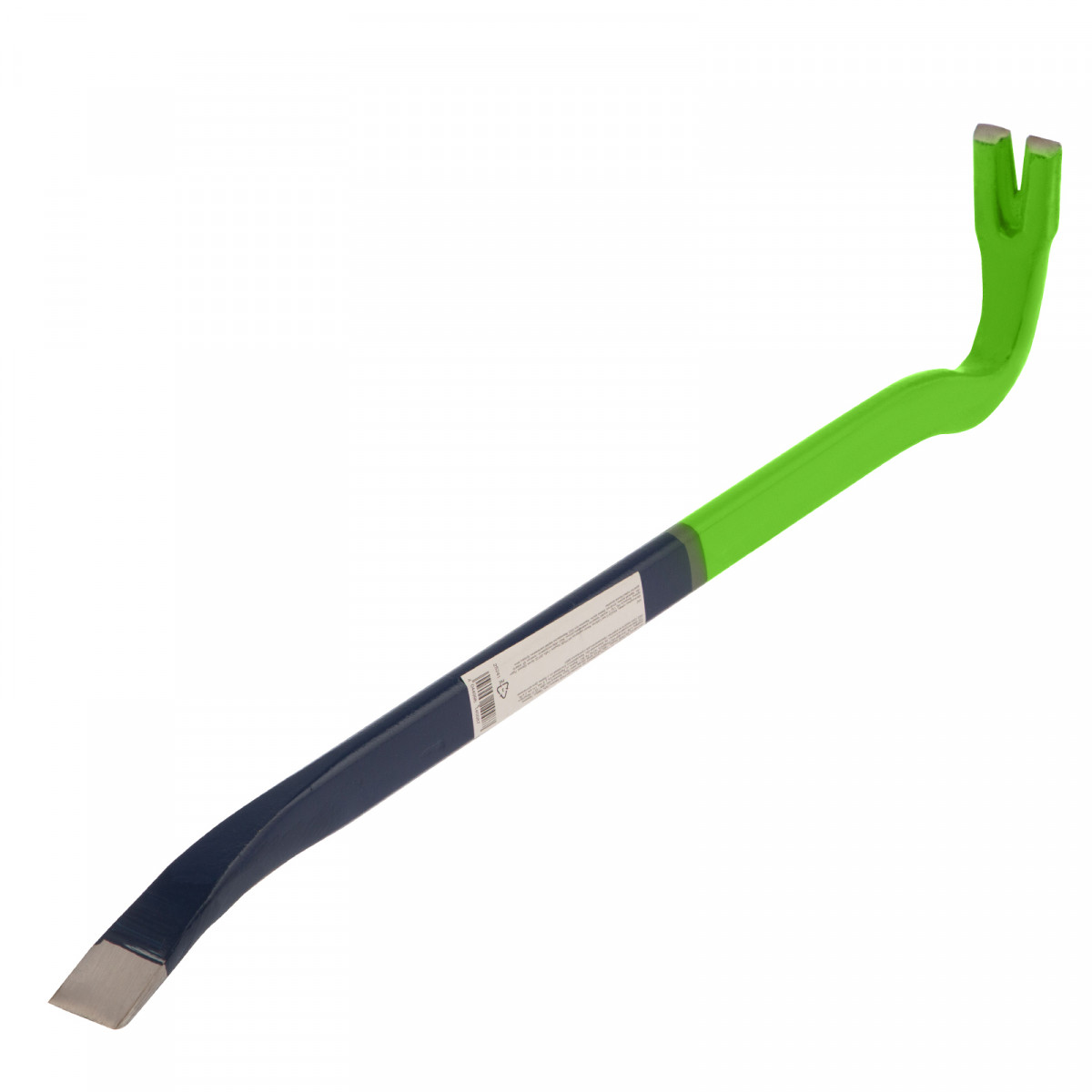 Лом-гвоздодер Сибртех 25241 размером 450 х 22 х 12 мм позволяет удалять гвозди, а также срывать доски с пола, разбирать ящики, демонтировать заборы, вагонку со стен или шифер с крыши. Может служить рычагом для поднимания грузов, поскольку прямоугольно-овальный профиль значительно усиливает его на момент излома. Инструмент подходит для профессионального и бытового применения.