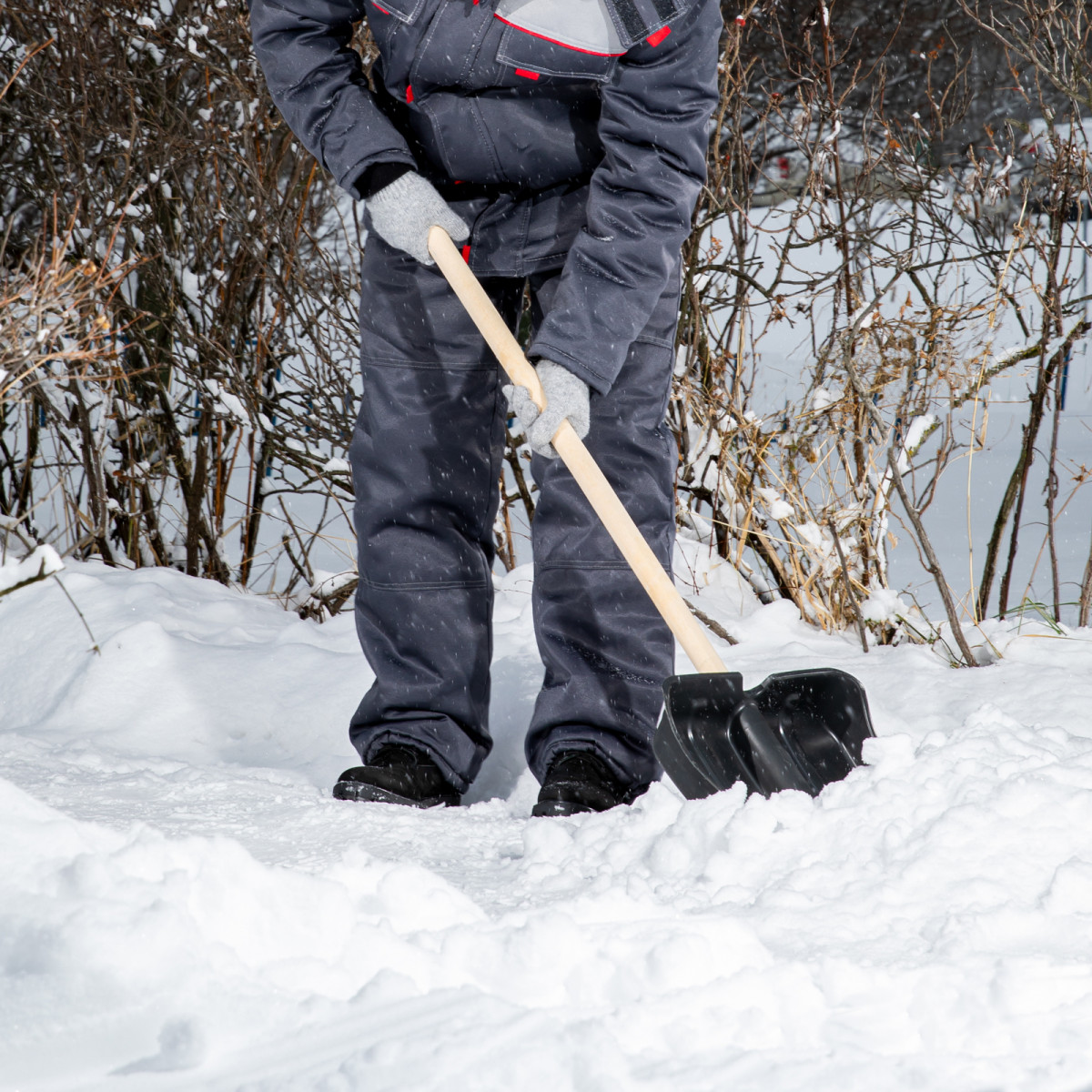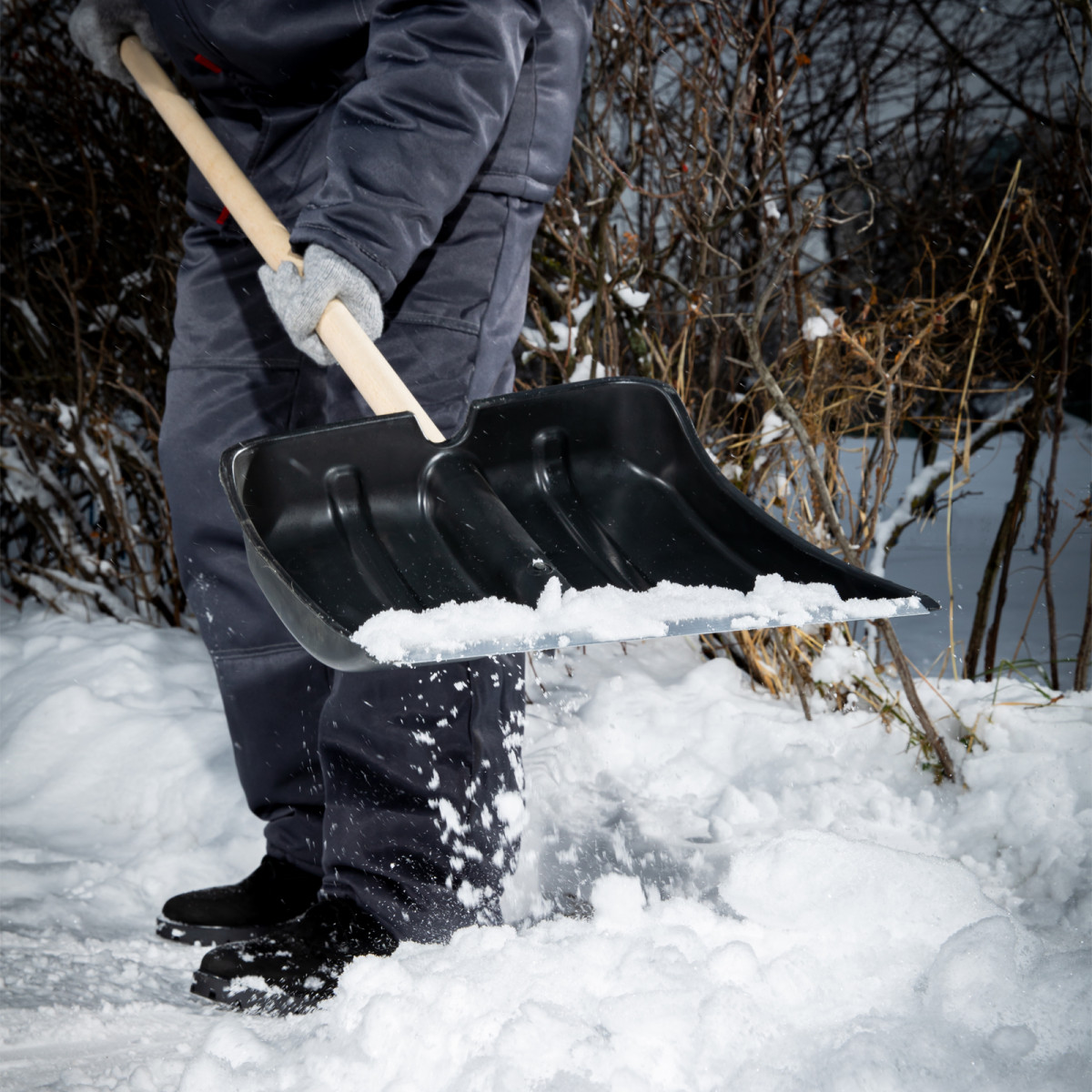Пластиковая лопата 615745 размером 380 х 385 х 1420 мм, с деревянным черенком, позволяет облегчить уборку снега. С ее помощью можно очистить дорожки в загородном доме, выезд из гаража и т.д. С облегченной лопатой 820 г легко справятся женщины и подростки. А за счет длины 1420 мм с ней комфортно работать, т.к. снижается нагрузка на спину.