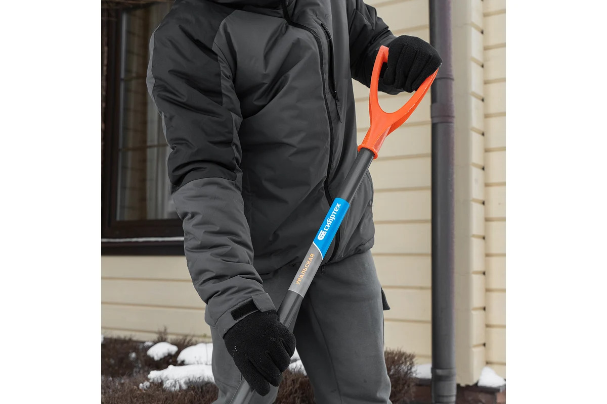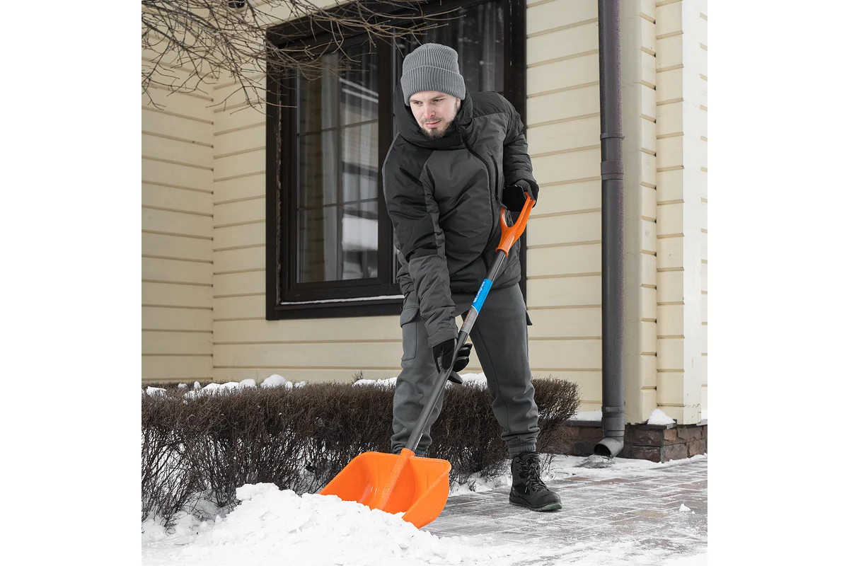 Лопата для уборки снега пластиковая 400х405х1380 мм стальной черенок усиленная СИБРТЕХ