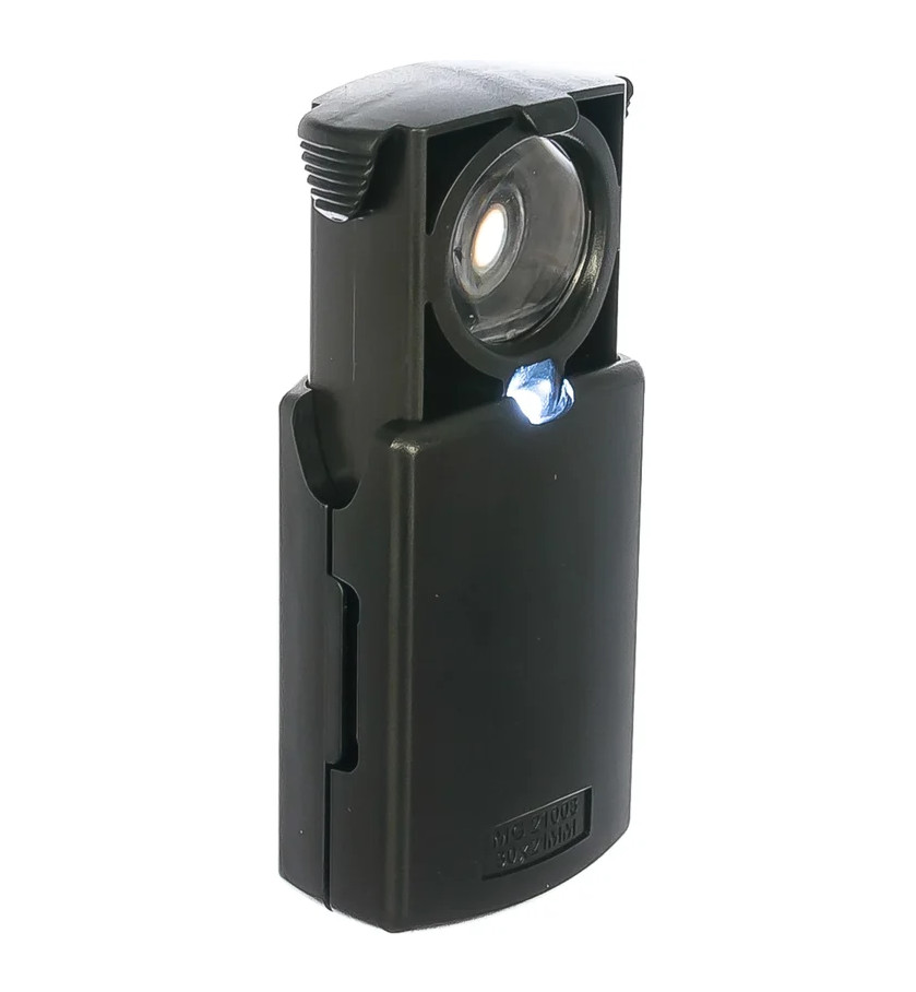 Лупа с подсветкой, с комплектом батареек обеспечивает большое увеличение мелких предметов и их подсвечивание в условиях плохой видимости.