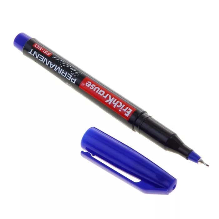 Маркер перманентный Erich Krause FP-50 линер Fine tip 0.6мм, синий,предназначен для офисного, складского и домашнего использования. Используется для маркировки и письма на всех поверхностях: бумага, картон, стекло, ластик, фарфор, керамика, дерево.