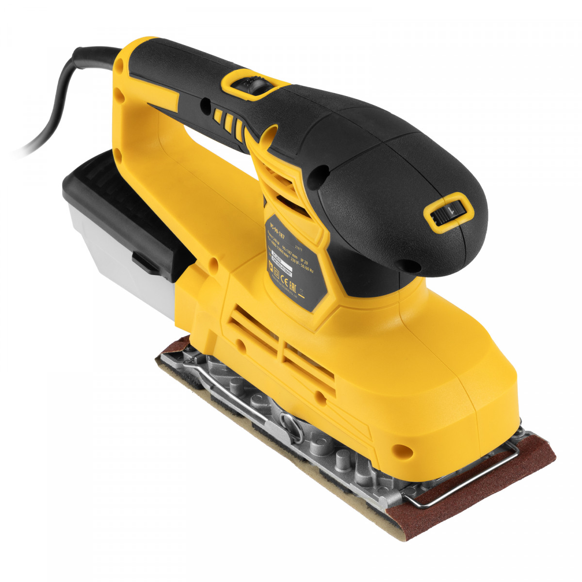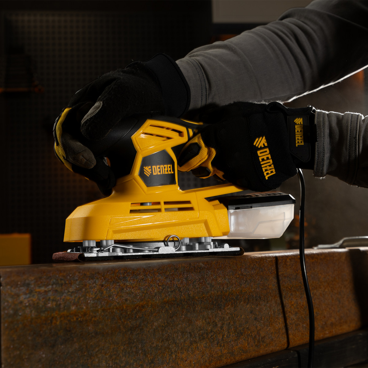 Вибрационная плоскошлифовальная машина Denzel VS-90-187 мощностью 240 Вт, с частотой колебаний подошвы 6000-11000 об/мин, подходит для сухого шлифования, зачистки и полировки поверхностей. Регулировка частоты колебаний подошвы 6000-11000 об/мин позволяет выбрать оптимальный режим работы. Размер рабочей поверхности составляет 90 х 187 мм, ход платформы — 1,6 мм, благодаря чему машина эффективно справляется с обработкой больших поверхностей.