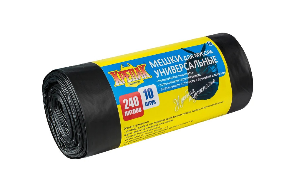Мешки для мусора 240 л 10шт рулон 40 мкм ПНД Крепак