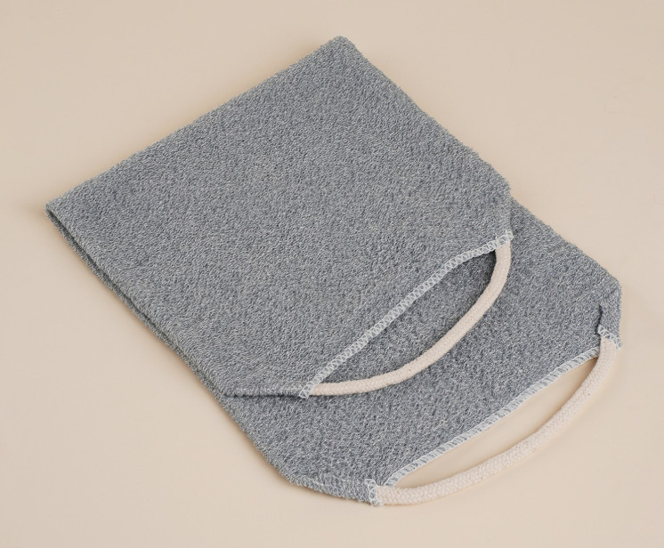 Однотонный серый цвет мочалки придает ей стильный и современный вид, который будет гармонично смотреться в любой ванной комнате.