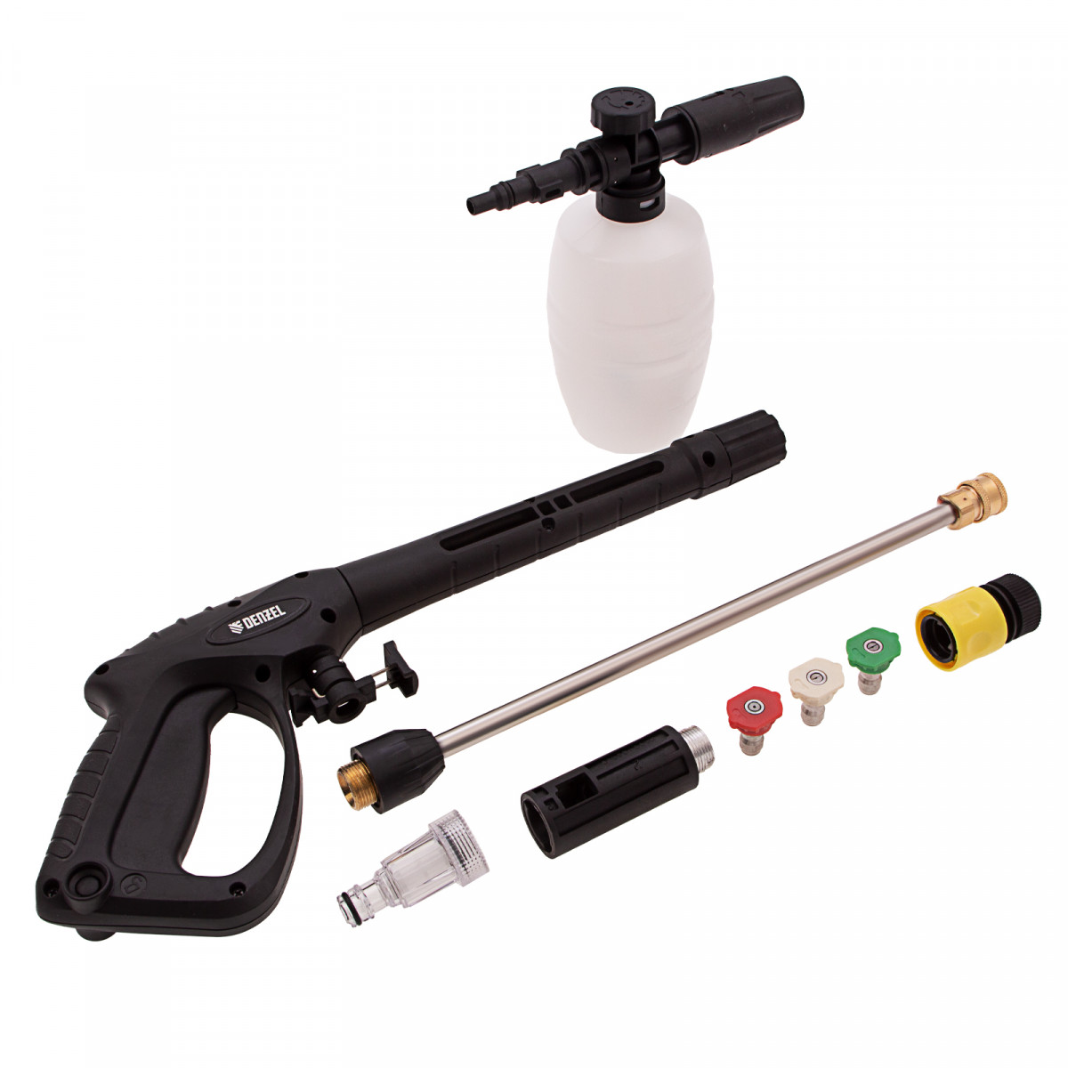 • Работа в труднодоступных местах — быстросъемные форсунки позволяют подобрать оптимальный режим, а насадка-удлинитель — мыть рельефные поверхности.