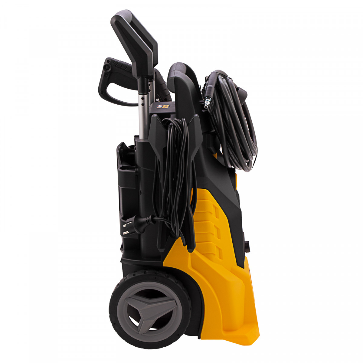 • Мобильность — колеса и телескопическая ручка позволяют легко перемещать мойку во время работы.