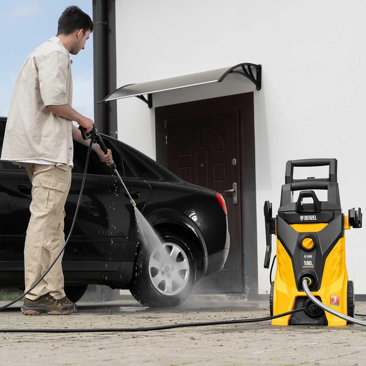 Асинхронный двигатель Denzel обеспечивает надежность и стабильное давление при использовании моечной машины R-180i.