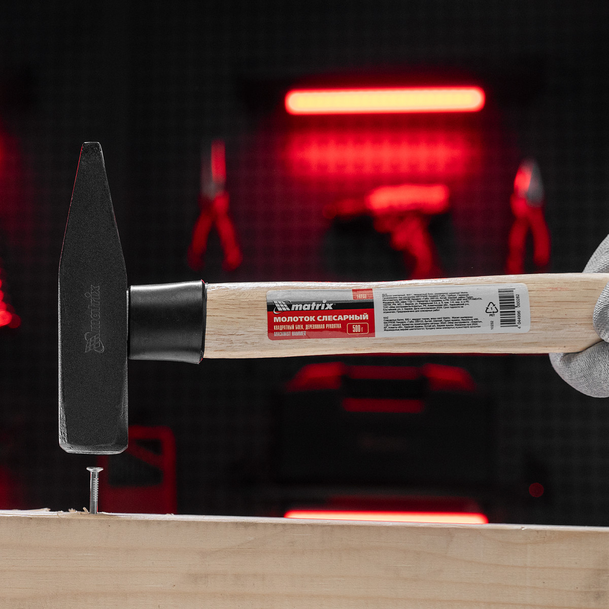 Молоток слесарный, 500 г, квадратный боек, деревянная рукоятка Matrix