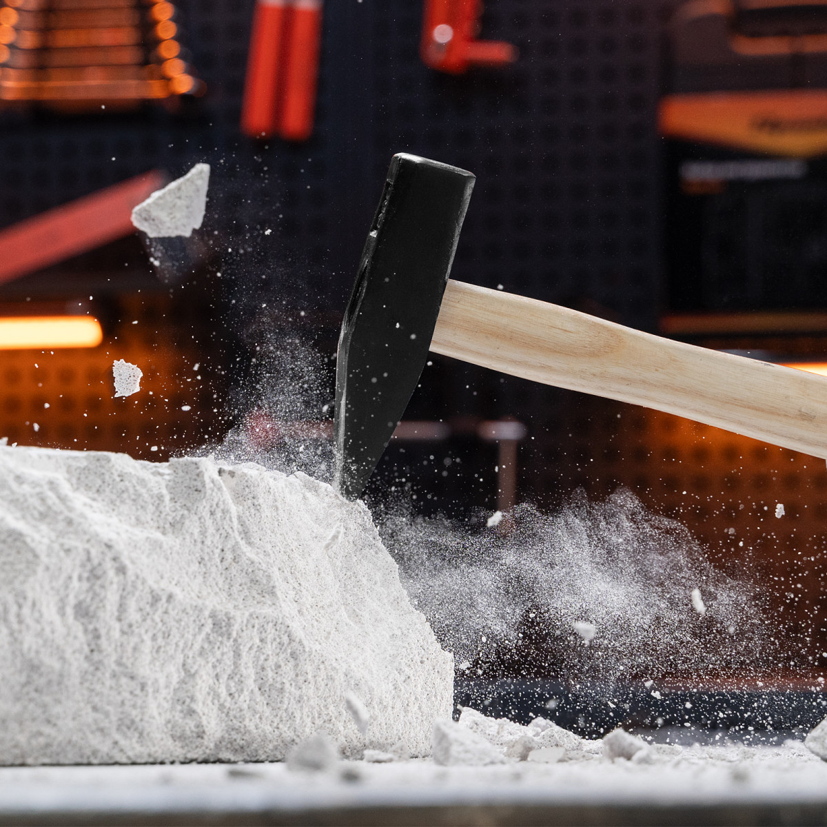 • Прочность — головка изготовлена из среднеуглеродистой стали 45 методом ковки и отфрезерована, рабочие части бойка закалены до твердости 40-45 HRC.