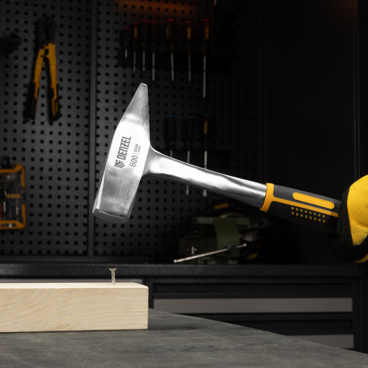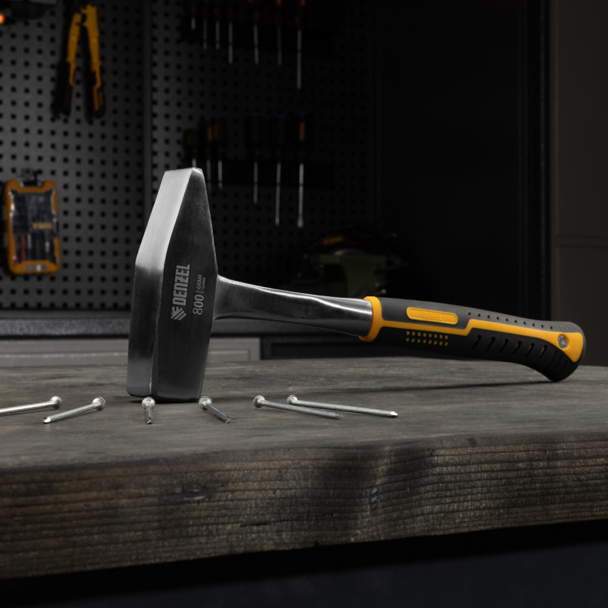Молоток слесарный 800 г, цельнометаллический, двухкомпонентная рукоятка Denzel