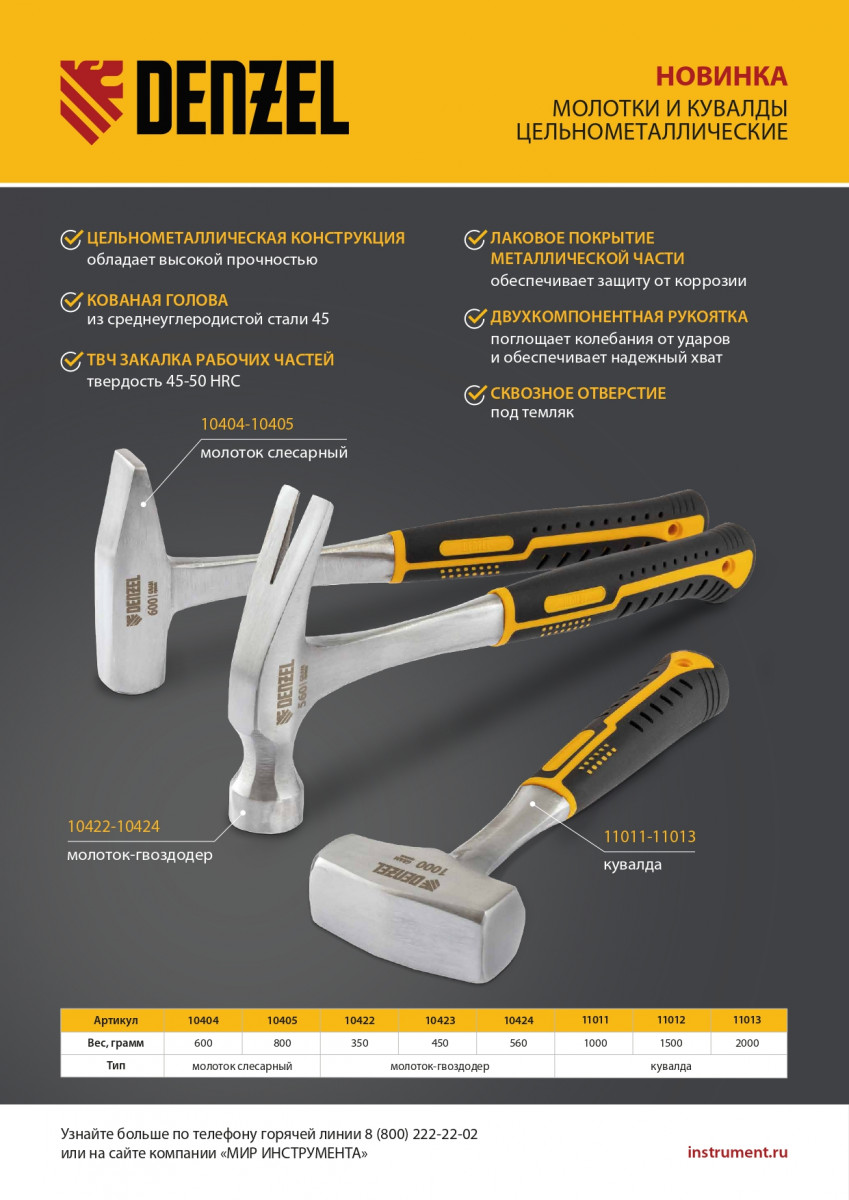 • Надежность — цельнометаллическая конструкция более прочная и исключает соскакивание головы молотка с рукоятки.