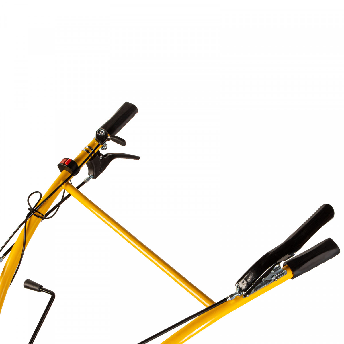• Эргономичность — рукоятки укреплены металлической перекладиной, а в месте захвата прорезинены для снижения вибраций.