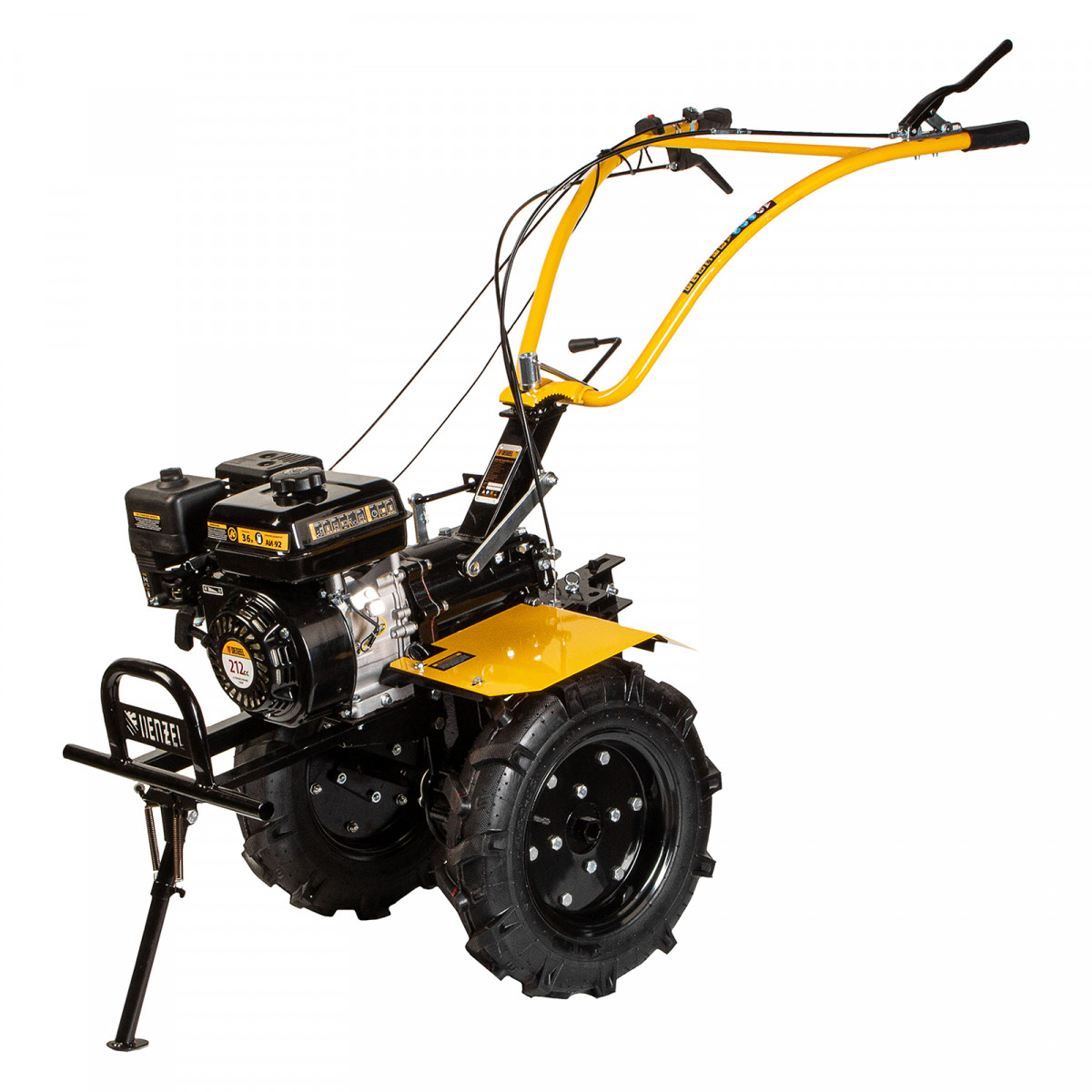 • Отличная проходимость — пневмоколеса увеличенного диаметра обеспечивают маневренность, поэтому мотоблок можно использовать даже на вязком грунте после дождя.