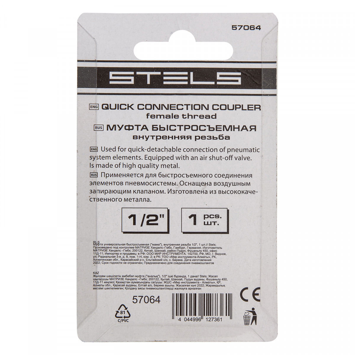 Муфта универсальная быстросъемная ("мама") внутренняя резьба 1/2, 1 шт, Stels