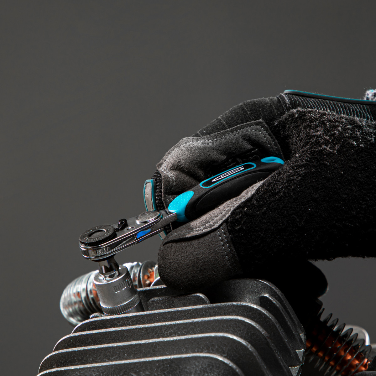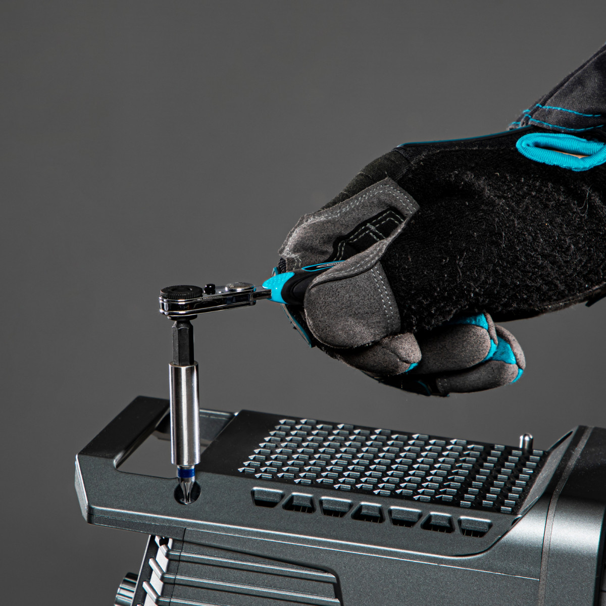 - Работа в труднодоступных местах — ключ с карданным шарниром позволяет выполнять монтаж/демонтаж метизов под любым углом, а удлинитель облегчает доступ к глубоко расположенным соединениям.